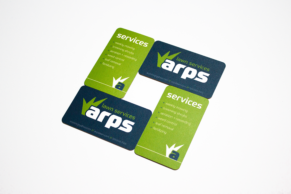 Arps is a company that provides various lawn care services to customers in Raleigh, Durham, Cary, Wake Forest, Morrisville, and Apex, North Carolina. They approached me to redesign their existing logo which had been in circulation for about ten years since their inception, as well as redesign their business cards to function as a checklist and pricing tool. They wanted something that was friendly and approachable, while professional and clean. The logo is on the hats and shirts of the workers so it really needed to “pop” for people passing by. They also wanted to incorporate a tagline or subtext to communicate the nature of their company.